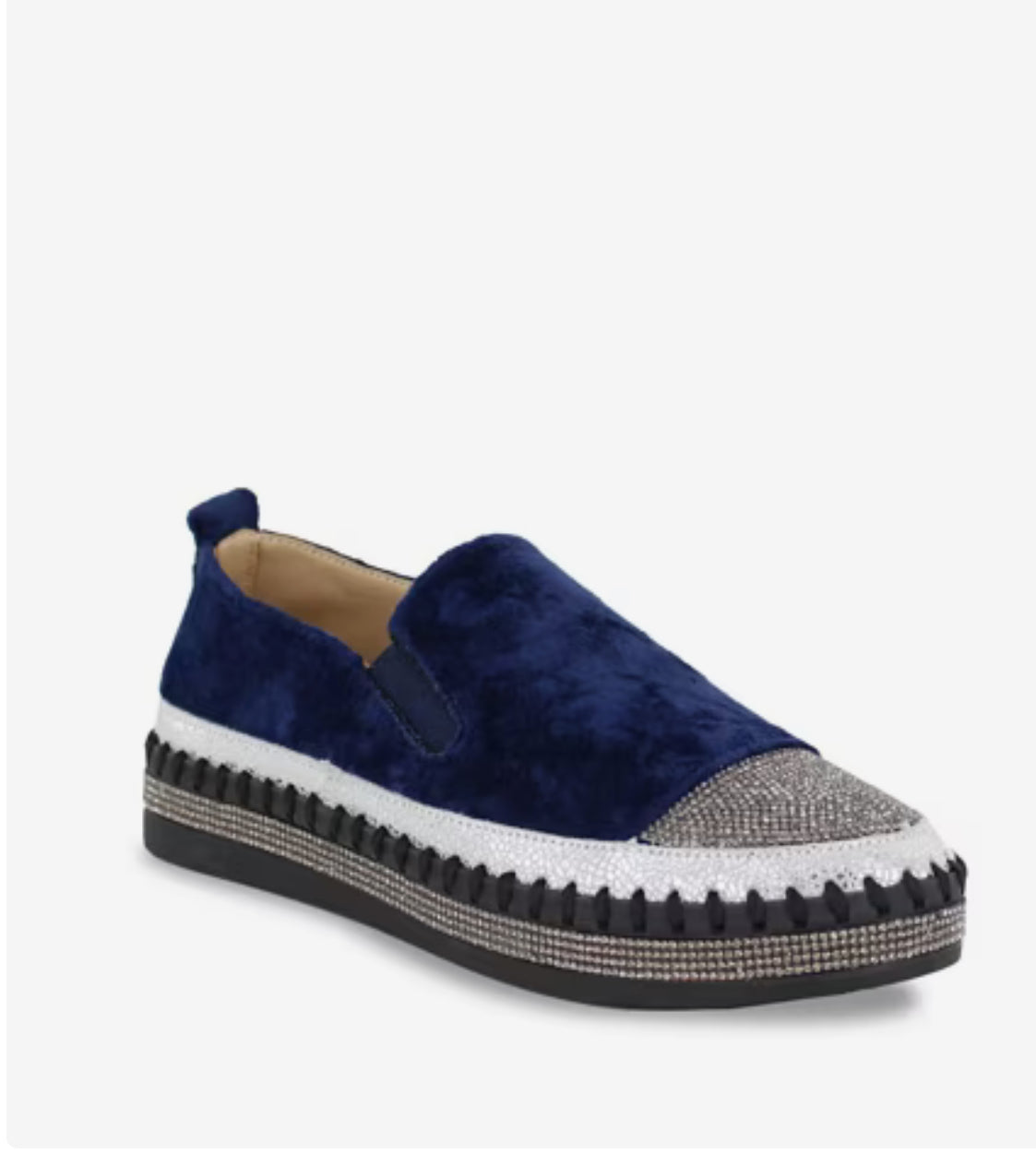 Effortlessly add a touch of sophistication to your wardrobe with these sleek slip-on loafers. "TW-187" by Bernie Mev is complete with a glitzy toe cap that adds a touch of flair to any outfit.
